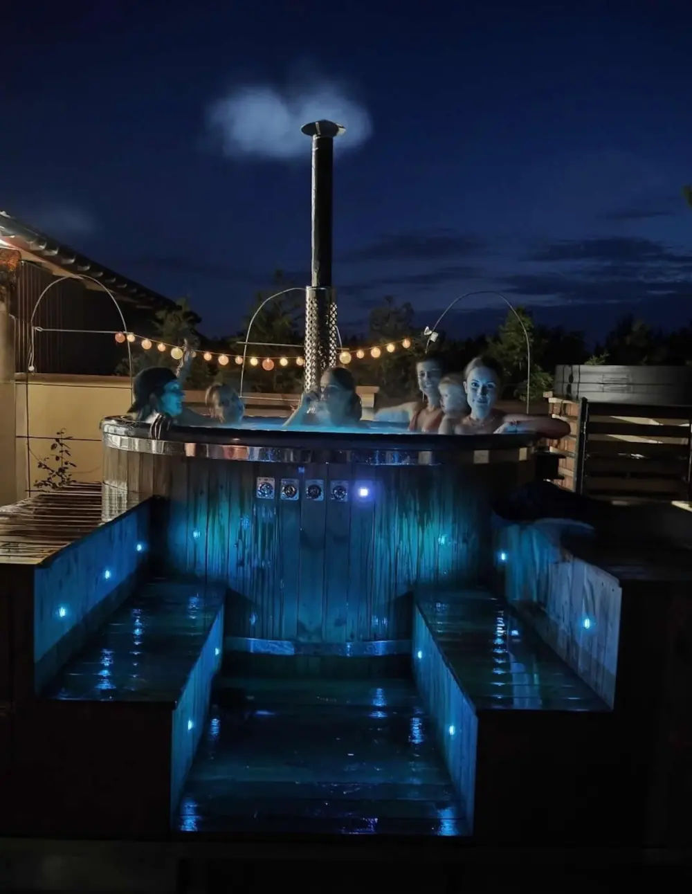 Nasza balia pomieści wygodnie 6 – 8 osób. Jeśli grupa jest mniejsza, każdy ma jeszcze więcej miejsca na swobodne ułożenie się i relaks.